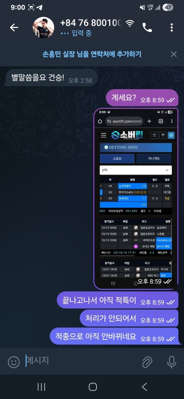 table.type03 { border-collapse: collapse; text-align: left; line-height: 1.5; border-top: 1px solid #ccc; border-left: 3px solid #369; margin : 20px 0; width:90%; } table.type03 th { width: 20%; padding: 10px; font-weight: bold; vertical-align: top; color: #153d73; border-right: 1px solid #ccc; border-bottom: 1px solid #ccc; text-align:right; background:#f4f4f4; } table.type03 td { width: 80%; padding: 10px; vertical-align: top; border-right: 1px solid #ccc; border-bottom: 1px solid #ccc; font-weight:bold; } @media all and (max-width:800px) { table.type03 { border-collapse: collapse; text-align: left; line-height: 1.5; border-top: 1px solid #ccc; border-left: 3px solid #369; margin : 20px 0; width:100%; } table.type03 th { width: 35%; padding: 10px; font-weight: bold; vertical-align: top; color: #153d73; border-right: 1px solid #ccc; border-bottom: 1px solid #ccc; text-align:right; background:#f4f4f4; } table.type03 td { width: 65%; padding: 10px; vertical-align: top; border-right: 1px solid #ccc; border-bottom: 1px solid #ccc; font-weight:bold; } } 사이트명 소버린 사이트주소 소버린주소.com 먹튀날짜 2025년 10월 20일 먹튀금액 900,000 90만원 없어서 스포츠 걸고소뱅 적특뜨길래 끝나고나서 적중처리해달라니까 바로 아이디 탈퇴에 먹튀 ㅋㅋㅋㅋㅋㅋ 90만원없어서 먹고 도망가냐? 글보면 연락해라