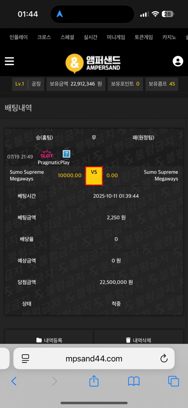 앰퍼샌드 먹튀 2200만원 잠수먹튀 슬롯만배