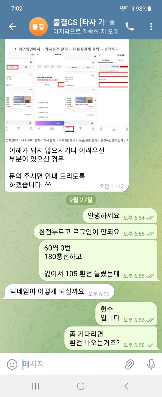 180충전 108환전눌렀는데 손해났는데아이디,텔레 차단합니다ㅋㅋㅋ개씹구멍가게 이용 ㄴㄴㄴ