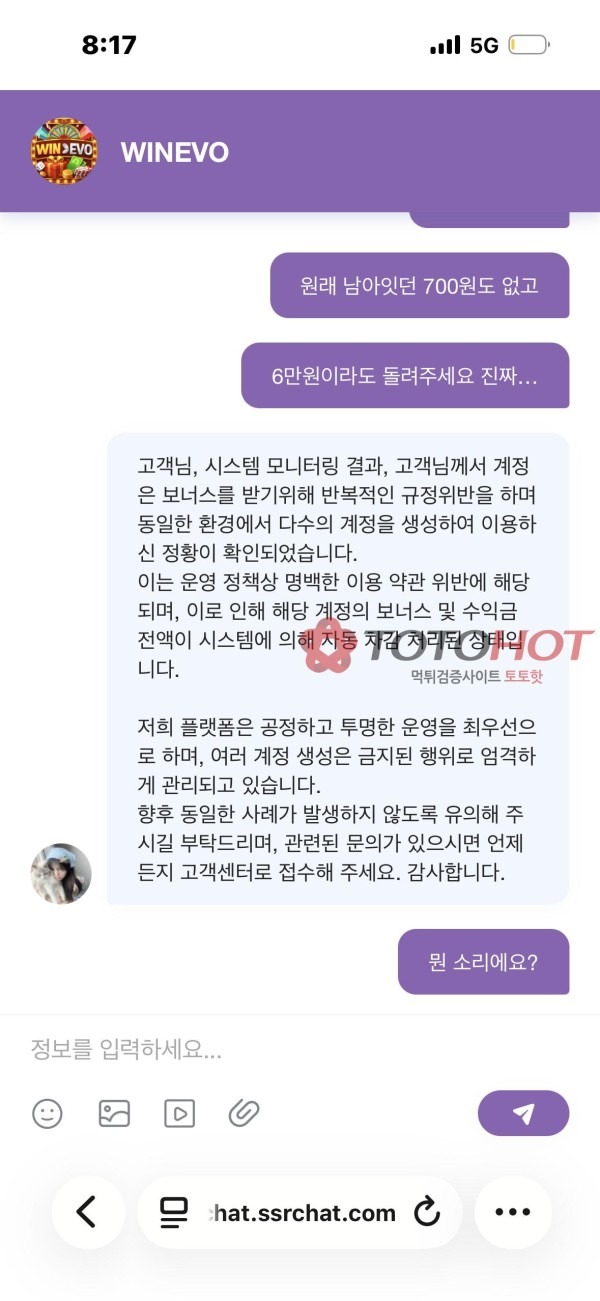 근데 심사실패가 뜨더니 출금신청한 금액, 잔고 금액 전부 몰수 당한 걸 확인하고 문의 했더니 말도 안되는 소리를 지껄였습니다. (심지어 친구는 다른 지역) 그래서 항의하고 해명했더니 돌아오는 말은 그냥 받아들이세요 였습니다. 사례가 많은 걸 보니 확실히 여긴 걸러야겠네요.