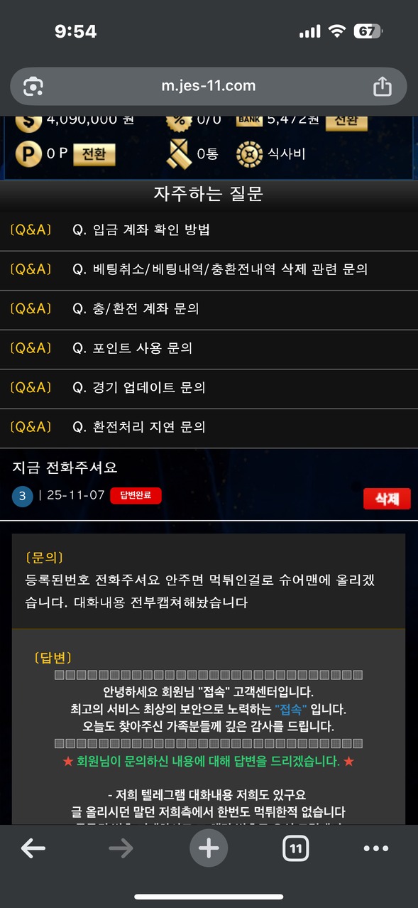시재 부족해서 회원 돈을 탐닉하는 레드라인의 먹튀!