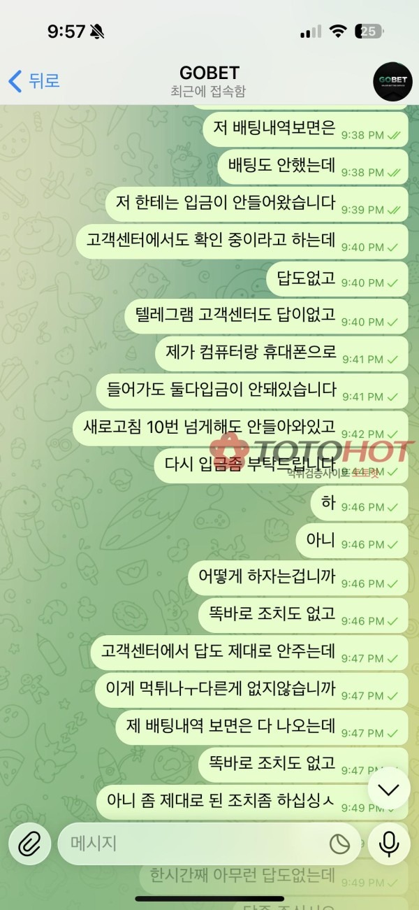 20만원 입금신청하고 한시간넘게 기다리고있는데 입금 됐다고 하고 고객센터에서 계속 대답안하고 잠수타고 있고 연락도 안보고 답장도 안해주네요