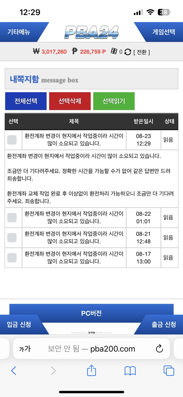 구멍가게 버러지들이네요처음 환전 팅굴때부터 느낌 왔는데그냥 먹인갑다 하고 언제까지 멘트치나 보는데 한달넘게 환 팅구고 똑같은 말만 반복 ㅋㅋ핑쏘려다 그냥 금액도 그렇게 안크고 불쌍해서 놔뒀네요 처음에 조금 주긴 줍니다 환전 ㅋㅋpba100pba200도메인 두개로 알고있어요 똥밟지마셔요
