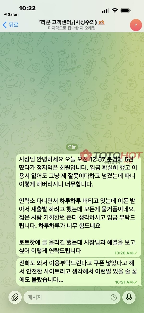 [05/365] 라쿤 먹튀, 라쿤카지노 먹튀 / 라쿤 카지노 5300먹튀 5일차 입니다. 연락이 없네요.