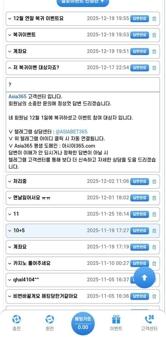 아시아 이벤트 말바꿈 개양아치 짓함 먹튀 조심