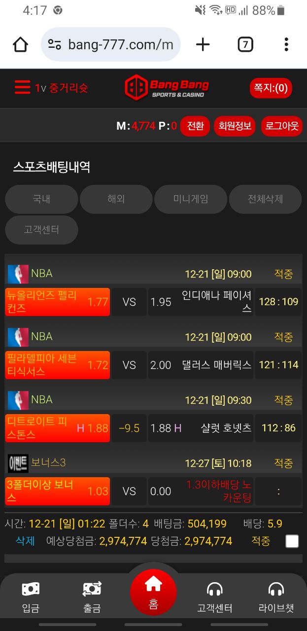 꿈자리가 좋더라니 NBA 3폴잡고 꾸역꾸역 맞추고나니 당첨금까지 다들어오고 환전신청하니까 아이디 로그인이안되네요 뱅뱅아 이러지말자.. 돈내놔라 제발..
