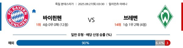 바이에른뮌헨 브레멘 분데스분석 토토사이트 9월27일