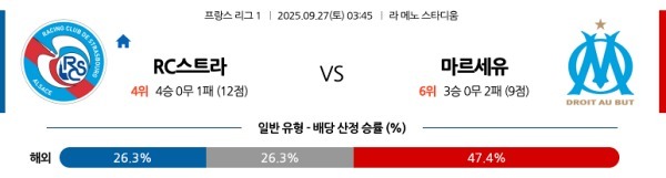 스트라스부르 마르세유 리그앙분석 토토사이트 9월27일