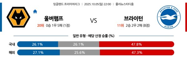 【EPL】 10월05일 울버햄튼 vs 브라이턴 토토사이트, 스포츠분석
