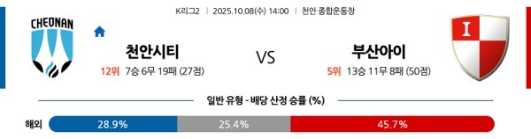 천안시티 부산아이파크 국내축구분석 토토사이트 10월08일